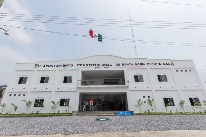 En compañía del Secretario de Comunicaciones y Transportes del Gobierno Federal, el Jefe del Poder Ejecutivo de Oaxaca señaló que este edificio permitirá a Santa María Petapa contar con un palacio municipal digno para ejercer sus funciones en beneficio de la población.