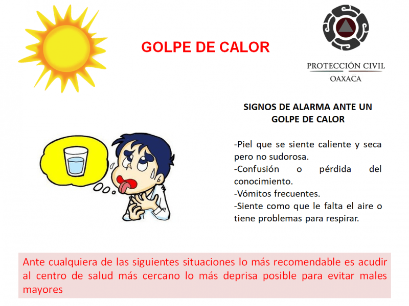 La CEPCO recomienda que en caso de malestar por golpe de calor, acuda al centro de salud más cercana o se comunique a los teléfonos de emergencia 911 o al 14 4 70 27 al 29.
