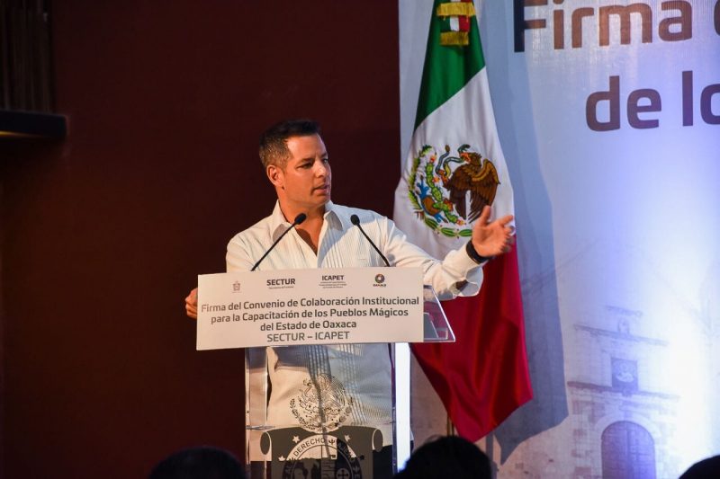- El Gobernador del Estado atestiguó la firma de un Convenio de Colaboración entre el Icapet y Sectur Oaxaca, para otorgar capacitación a más de mil 300 prestadores de servicios turísticos de los Pueblos Mágicos.