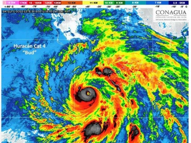 El Servicio Meteorológico Nacional (SMN) informó esta madrugada que el huracán Bud se ha intensificado a la categoría 4 de la escala Saffir-Simpson.