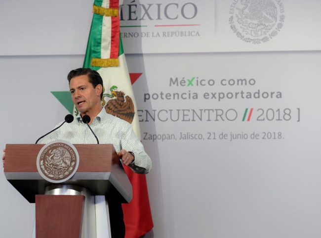Peña Nieto destacó que México pasó “de ser el doceavo productor de alimentos en el mundo, de ser un país que tenía que importar más alimentos de los que producía” a ser hoy el décimo exportador en este sector y exportar más alimentos de los que se importan.