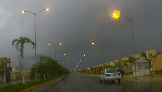 En la región de la Península de Yucatán permanecerá cielo parcialmente nublado con intervalos de chubascos, acompañados de actividad eléctrica. Ambiente muy caluroso y viento del este de 20 a 35 kilómetros por hora en esta zona.