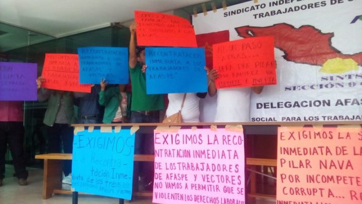 Genaro Villalobos secretario general señaló que las arbitrariedades vienen de la Doctora María del Pilar Nava Ramírez Directora d Prevención y Promoción a la Salud quien por obedecer intereses de sus superiores han despedido a trabajadores del programa Acuerdo para el Fortalecimiento de las Acciones de Salud Pública en los Estados (AFASPE) y de Vectores para poder ocupar las claves para recomendados y cumplir compromisos políticos sin tomar en cuenta la antigüedad de hasta de diez años o más.