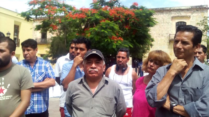 Oaxaca, Oaxaca, 9 julio 2018 artistas organizados del Jardín Antonia Labastida denunciaron el abuso de autoridad del que fueron objeto por parte de inspectores municipales al retirar un carrito con su parasol en donde exhibían dibujos artísticos para su venta.