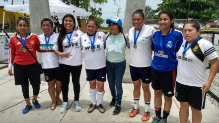 San Juan Bautista, Tuxtepec, Oax., 15 de Julio, 2018.- “Fantasmas”, equipo representativo femenil de la capital del Estado, que participó en el Octavo Torneo Estatal de Street Soccer en Oaxaca, celebrado en esta demarcación municipal obtuvieron el primer y segundo lugar de esta justa deportiva por lo cual sus integrantes representarán a su Estado en el próximo Torneo Nacional de Futbol de la Calle, promovido por la Fundación Telmex y Street Soccer México.