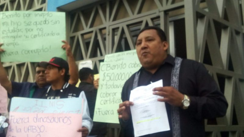 Oaxaca, Oaxaca, 30 agosto 2018 Padres de familia, alumnos y catedráticos de la escuela preparatoria número 7 de la UABJO protestaron en el edificio temporal que ocupa la dirección de servicios escolares para exigir al director de esa área Carlos Benito García la entrega de certificados de 165 egresados de esa escuela y que no pueden realizar algún trámite ante alguna escuela de nivel superior.
