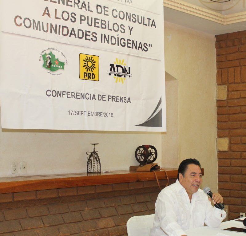 Oaxaca de Juárez, Oax., 17 de Septiembre 2018.- “Con la aprobación de la Iniciativa de Ley General de Consulta a los Pueblos Indígenas, desde el Congreso de la Unión, contribuiremos con los que menos tienen para hacer valer su voz y el derecho de nuestros pueblos y comunidades originarias para que sean tomados en cuenta en los grandes proyectos nacionales que está impulsando el Presidente electo de México, Andrés Manuel López Obrador”, subrayó el diputado federal oaxaqueño emanado del PRD, Manuel García Corpus.