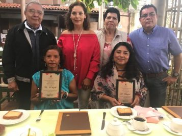 Oaxaca de Juárez, Oax., a 4 de octubre del 2018.- Este jueves, la Presidenta de Apoyo Comunitario de Oaxaca A.C (ACO), Verónica Quevedo Arango hizo un reconocimiento a Florinda López Méndez y Blanca Estela Velasco Sánchez, integrantes de ese organismo que obtuvieron el tercer lugar en el Sexto Concurso Nacional Gastronómico de ICAT celebrado en Tlaxcala.