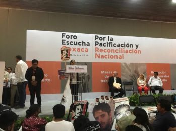 El día de hoy se llevó a cabo en Oaxaca el “Foro de escucha para la pacificación del país y la reconciliación nacional” convocado por el presidente electo Andrés Manuel López Obrador con el objetivo de escuchar a la sociedad, las personas victimas y expertos para transformar el contexto de crisis de seguridad y construir condiciones de paz y reconciliación en el país.