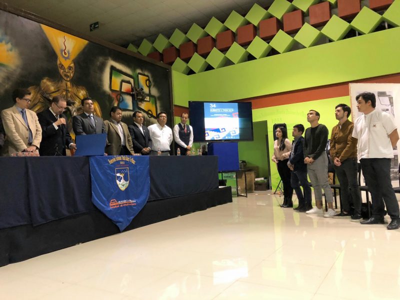 Luego de la participación de los especialistas y académicos para hablar del certamen, el director de la Facultad de Arquitectura de la Universidad Nacional Autónoma de México (UNAM), Mtro. Marcos Mazari Hiriart, entregó al rector Eduardo Bautista un reconocimientopara la FACU-UABJO, por ser sede de este magno encuentro.