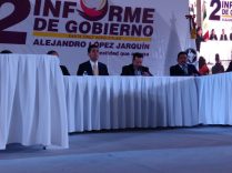 Santa Cruz Xoxocotlán, Oaxaca. 15 de diciembre del 2018.- En cumplimiento a la Ley Orgánica Municipal del Estado de Oaxaca, el edil Alejandro López Jarquín rindió la tarde de este sábado su segundo informe de gobierno antes más de cuatro mil personas que abarrotaron el Parque Central de Santa Cruz Xoxocotlán.
