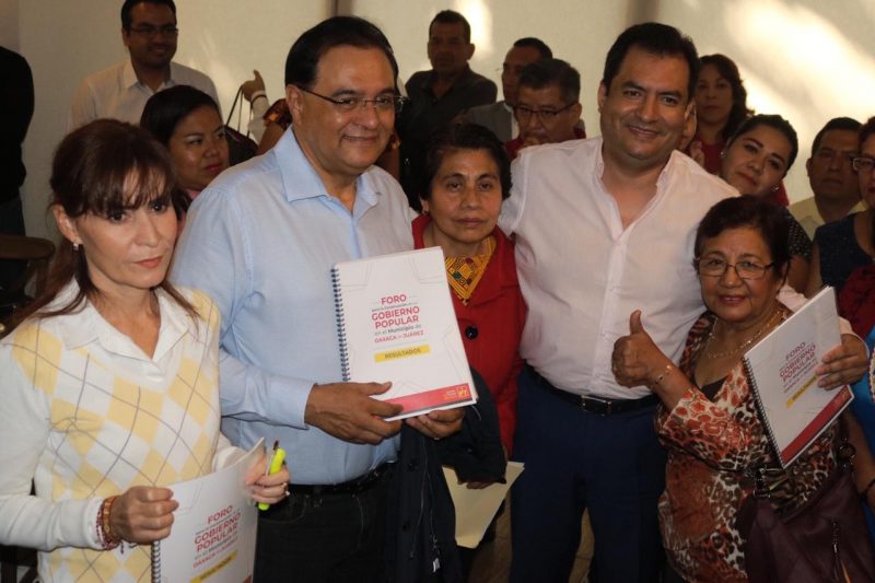 El Partido del Trabajo (PT) entregó al presidente municipal Oswaldo García Jarquín, los resultados del Foro para la Construcción de un Gobierno Popular en el municipio de Oaxaca de Juárez, que este instituto político realizó con la participación de habitantes de las 13 agencias capitalinas en el Instituto Tecnológico de Oaxaca (ITO) en noviembre pasado y del que se priorizaron 12 acciones-ejes que se proponen incorporar al Plan Municipal de Desarrollo.