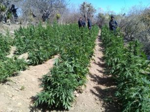 Este sábado, efectivos de la Policía Estatal patrullaban la zona, cuando en la salida de la misma población, con dirección la comunidad de Peña Larga, observaron una parcela aproximadamente a 50 metros de la carretera de terracería, en la que se visualizaban los sembradíos.