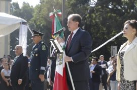 Con la representación del gobernador Alejandro Murat Hinojosa, el Secretario de Administración encabezó la ceremonia del Día de la Bandera