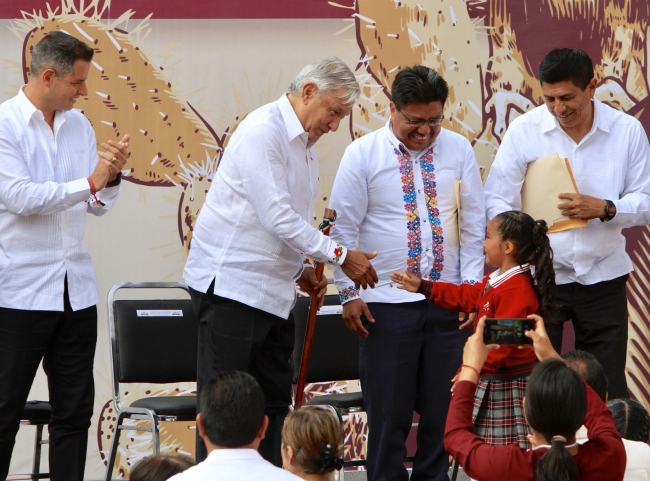 El mandatario prometió visitar cada 21 de marzo esta localidad para informar a la población y se comprometió a que habrá mucho trabajo en Oaxaca, donde se aplicarán diversos programas no sólo en el Istmo de Tehuantepec.