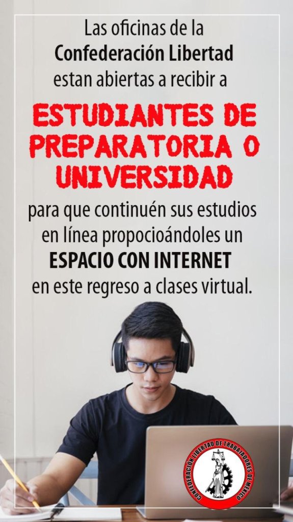 Ante la pandemia del Covid-19, la Confederacion Libertad de Trabajadores de México (CTLM) se solidariza con la comunidad estudiantil y estará prestando espacios con