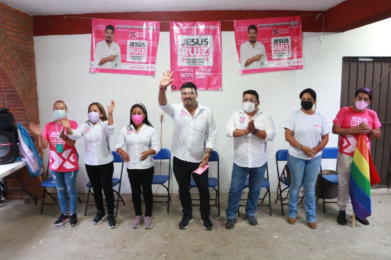 Oaxaca de Juárez, Oaxaca a 13 de mayo de 2021.- En su caminar por las diferentes agencias y colonias de nuestro municipio, Jesús Ruiz Olmedo candidato a presidente municipal del Partido Fuerza por México ha sido recibido por los habitantes de la capital con gran aceptación, adhiriéndose a su propuesta de trabajo tanto grupos de izquierda como numerosos grupos de derecha, esto debido a que lo consideran un candidato muy cercano a la ciudadanía, que genera confianza y que con su singular simpatía además de su lenguaje claro y objetivo lo hacen tener empatía con las personas inmediatamente.