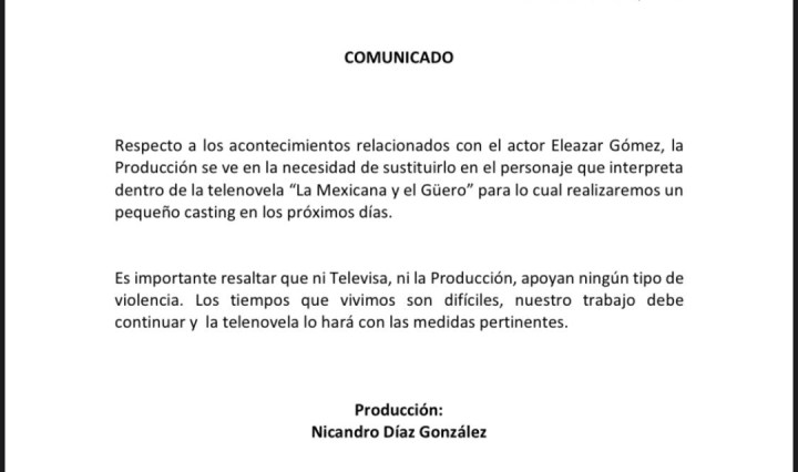 Eleazar Gómez fue detenido en la Ciudad de México tras la presunta agresión que cometió en agravio de su pareja sentimental. La producción de ‘La mexicana y el güero‘ anunció que el actor Eleazar Gómez, quien enfrenta problemas judiciales y se … Continúa leyendo Sustituirán a Eleazar Gómez en la telenovela “La mexicana y el güero”