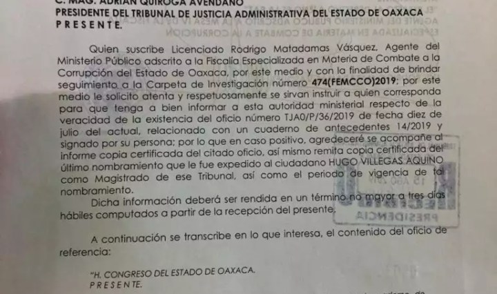 agosto 18, 2019 Oaxaca Oax. Jueves 18 de agosto de 2019. – El Magistrado Presidente del Tribunal de Justicia Administrativa del Estado de Oaxaca (TJAEO), Adrián Quiroga Avendaño, denunció una situación porril e ilegal que sus compañeros de las Salas … Continúa leyendo Adrián Quiroga sigue siendo presidente del TJAEO con la ley en la mano