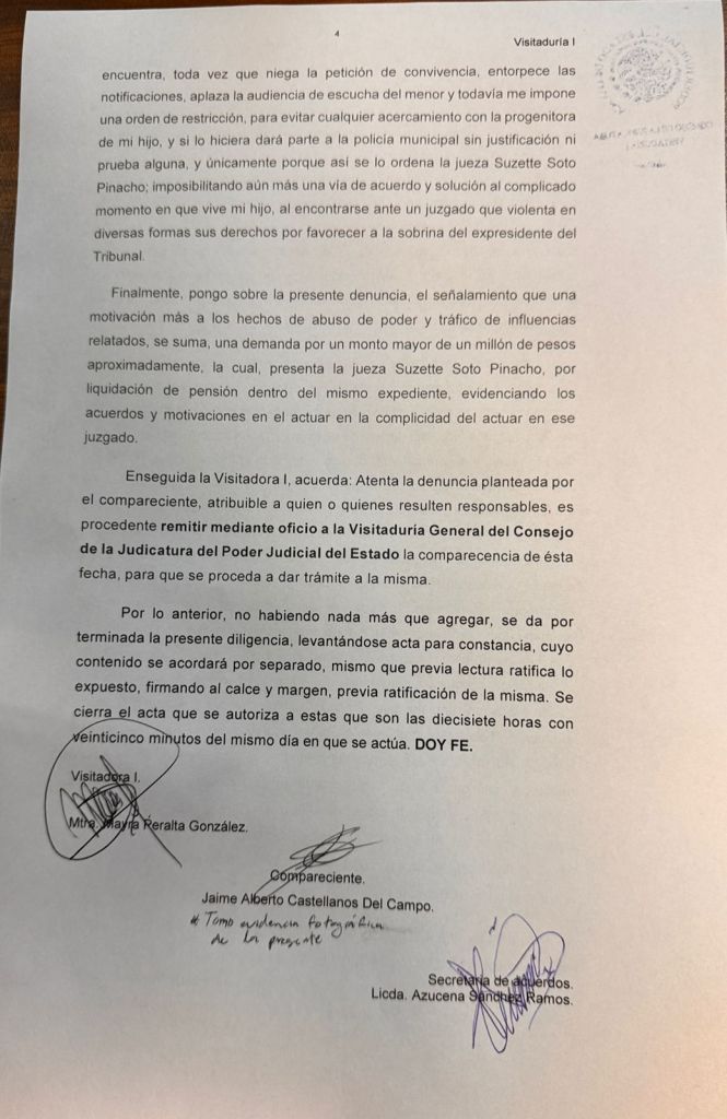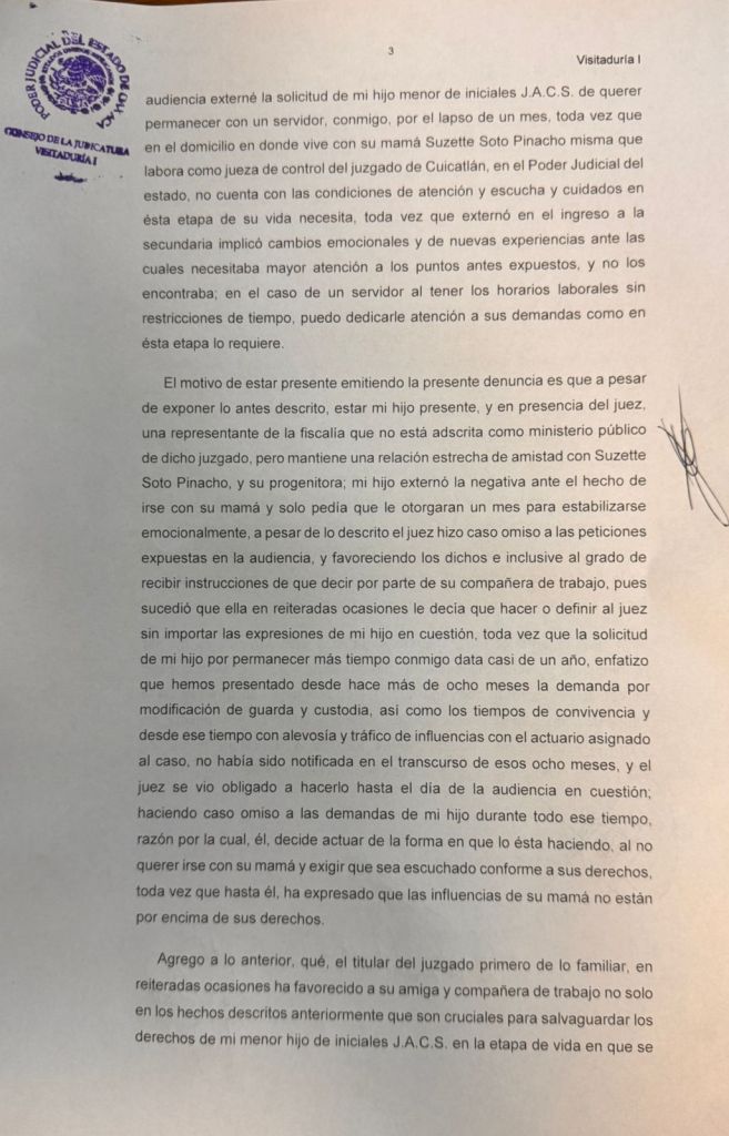 Utilizando sus influencias Suzette Soto Pinacho Juez de control y sobrina de Eduardo Pinacho, ex-Presidente del TSJ, a traves de su amigo el juez Primero de lo familiar, para que el expediente desde hace casi un año permanezca archivado aunado a que no le han