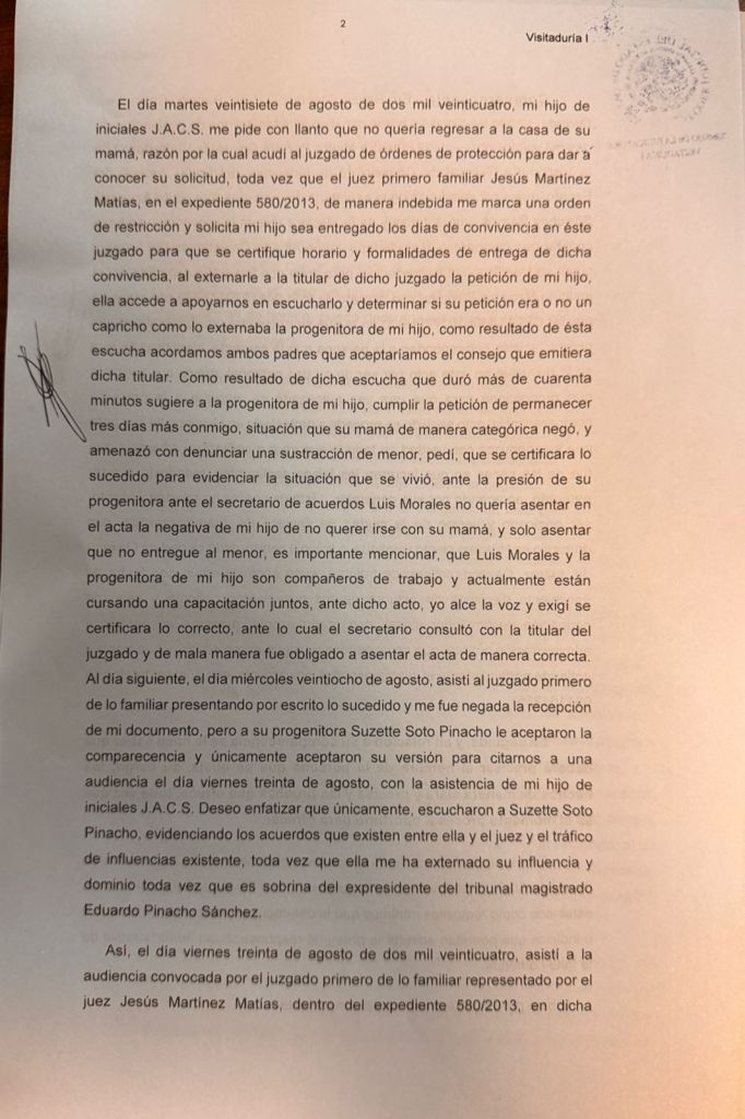 “En el expediente 580/2013 Juzgado Primero de lo Familiar del Centro, no han permitido a un menor manifestarse que desea más convivencia con su Padre.
